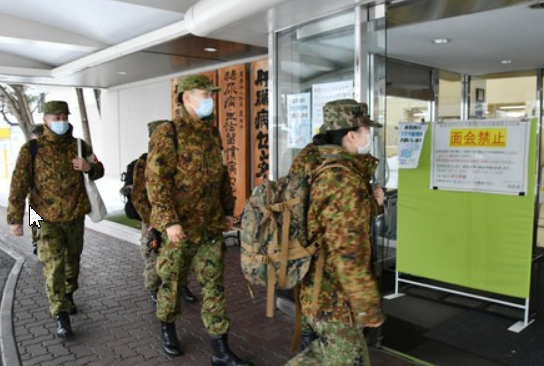 日本自卫队医疗小组抵达发生集体感染的医院(朝日新闻)