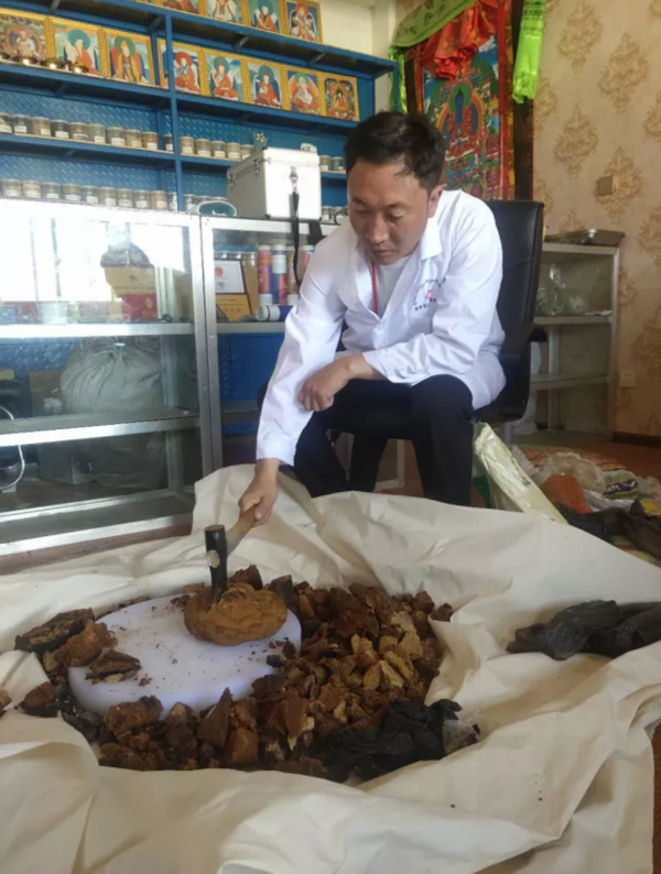 索朗扎巴在处理藏药材。图由索朗扎巴提供