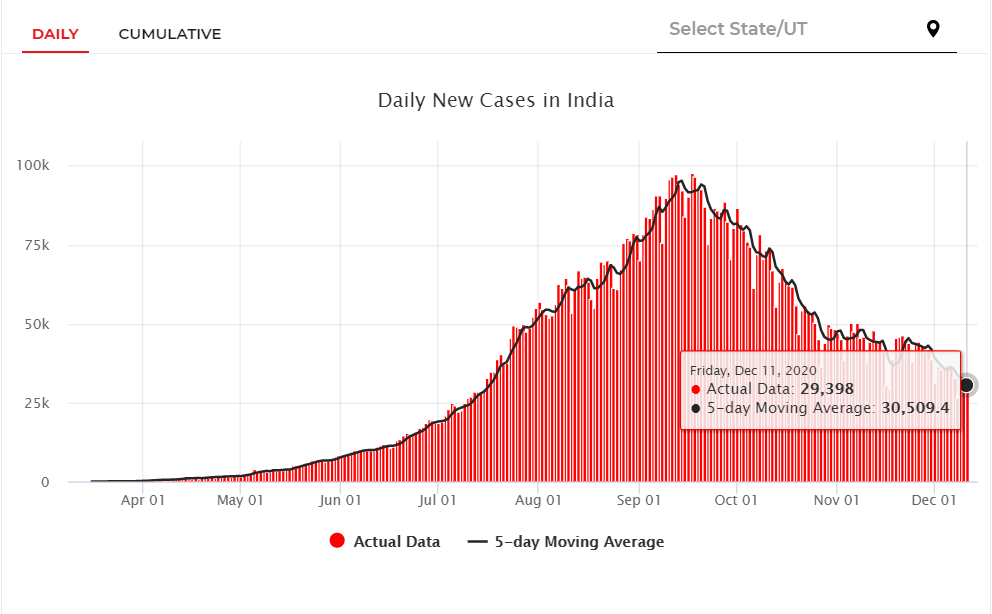据印度卫生部当地时间11日早8时(北京时间10时30分)发布消息,印度新冠肺炎确诊病例累计达9796769例,其中死亡142186例,治愈出院9290834例,活跃病例363749例。该国过去24小时新增确诊病例29398例,新增死亡病例414例,活跃病例减少8544例。