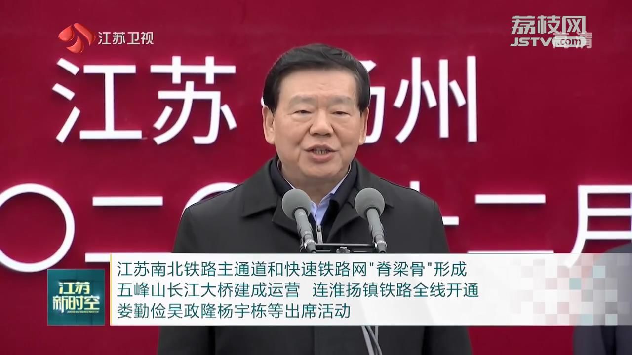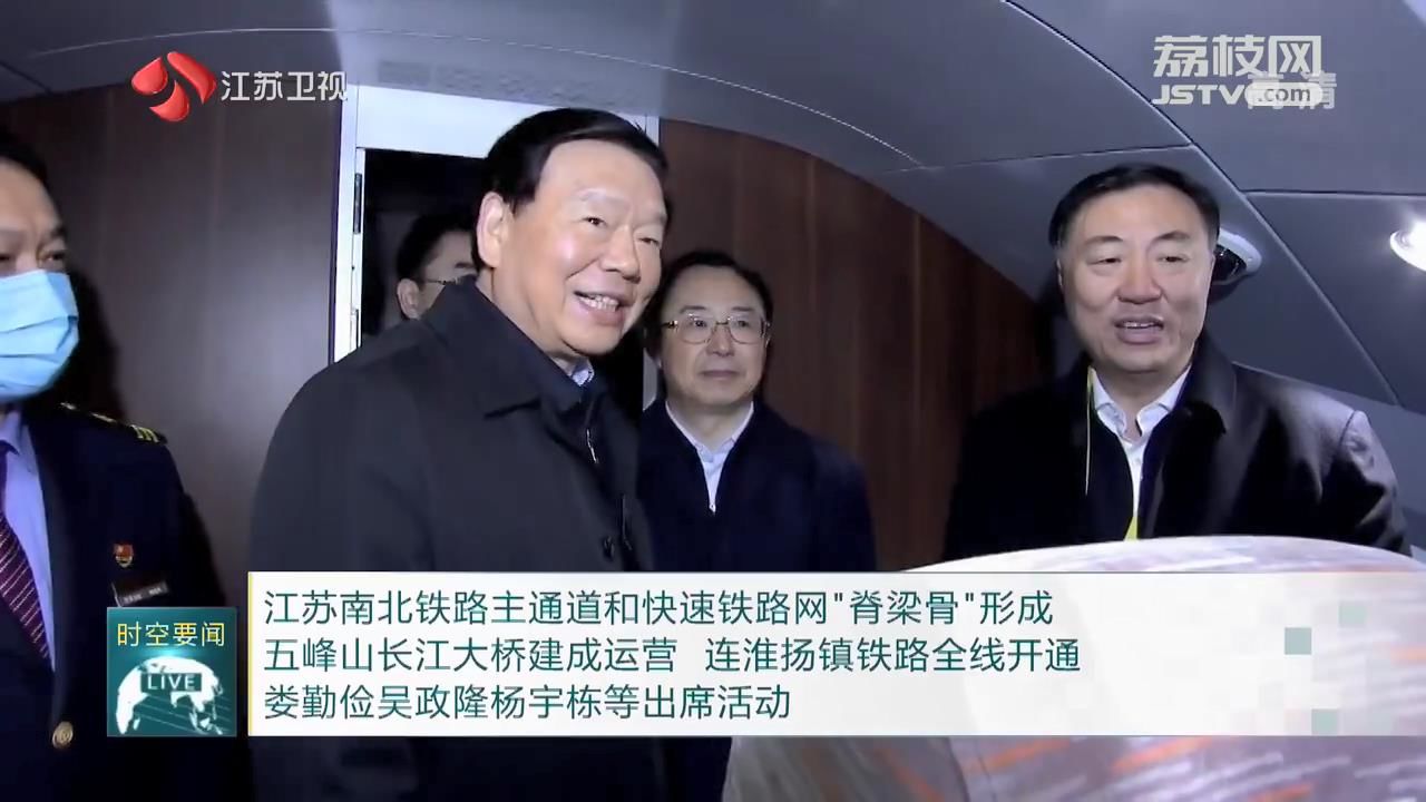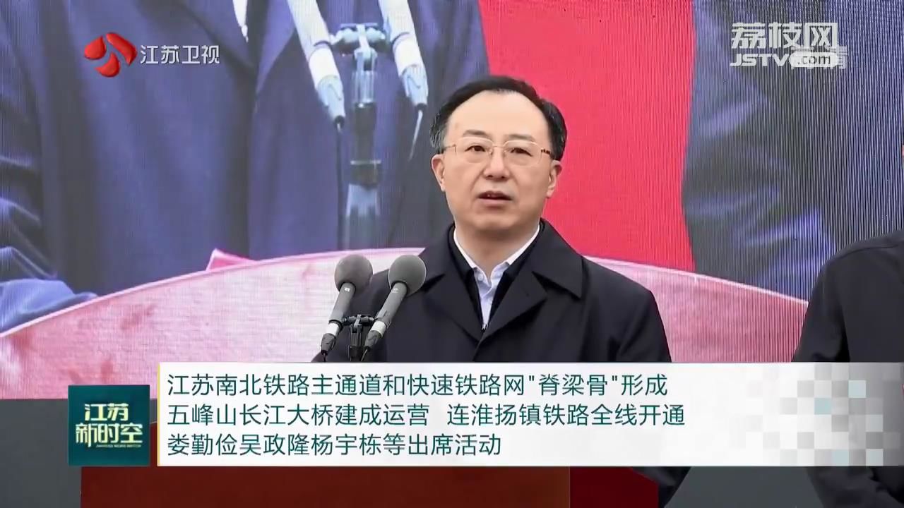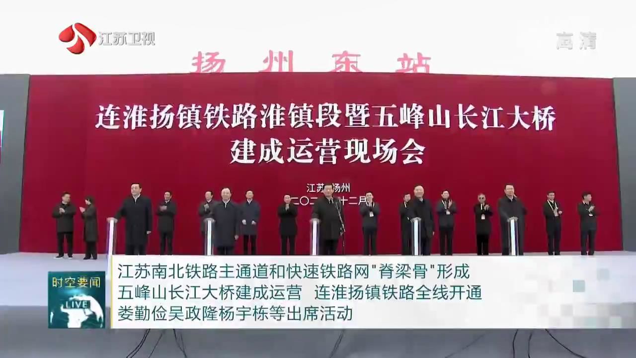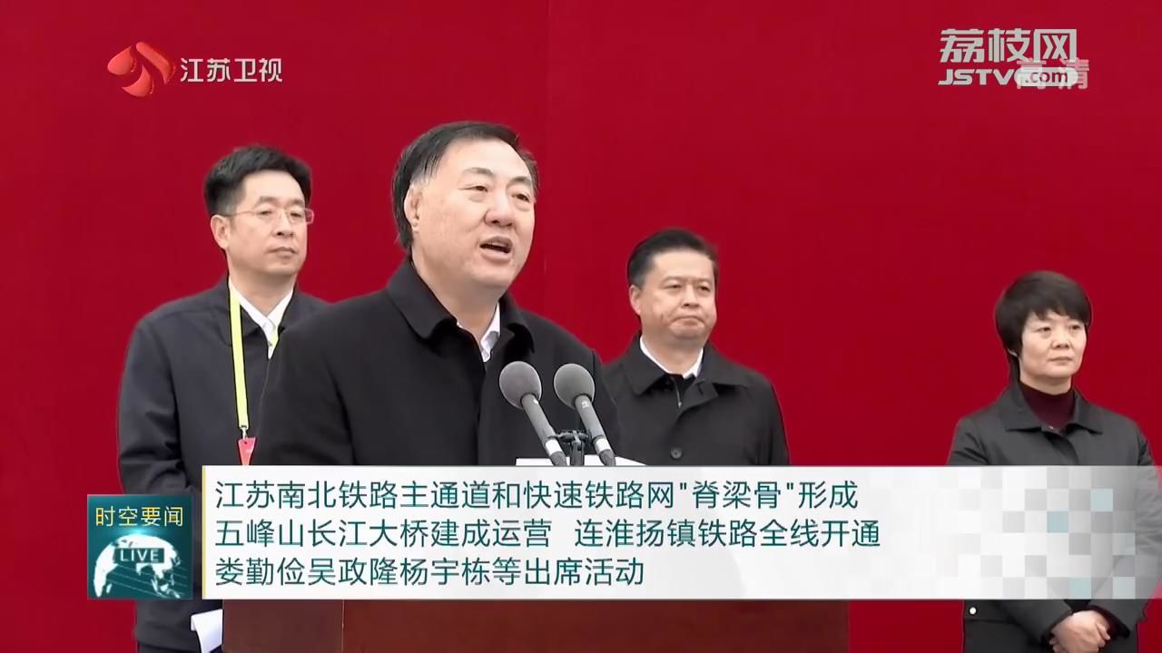 省委书记、省人大常委会主任娄勤俭出席现场会,宣布:五峰山长江大桥建成运营,连淮扬镇铁路全线开通。