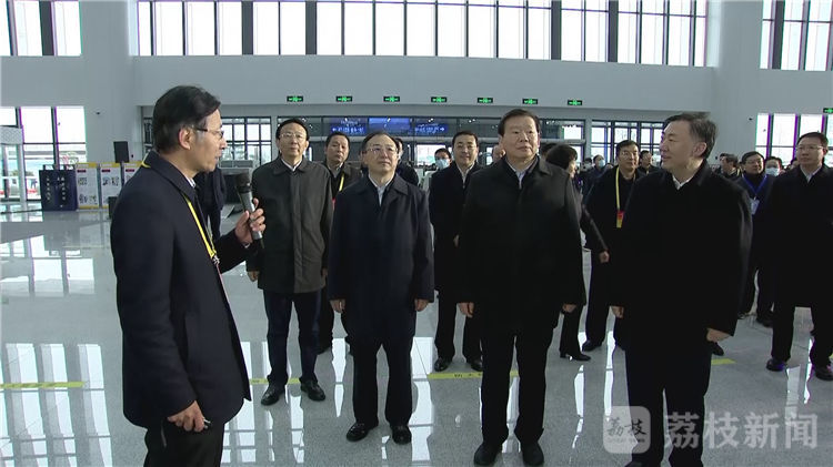 当天上午,娄勤俭、吴政隆、杨宇栋等领导同志来到新建成的扬州东站,在站前广场听取全省铁路规划建设、连淮扬镇铁路、五峰山长江大桥建设等情况介绍,走进特色鲜明、独具韵味的扬州东站考察综合枢纽体系建设,看望慰问工程建设者代表。