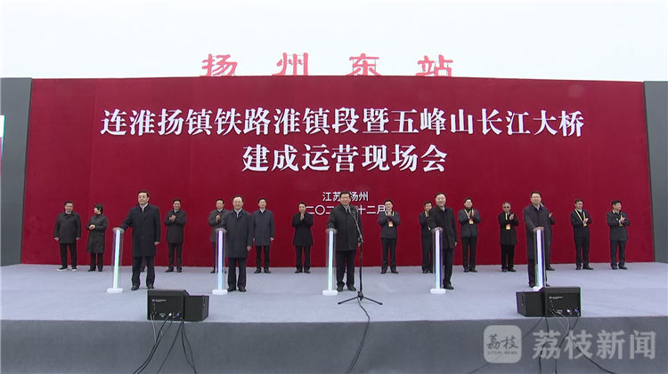 荔枝新闻讯 江苏现代综合交通运输体系建设迎来又一重大成果! 12月11日,连淮扬镇铁路淮镇段暨五峰山长江大桥建成运营现场会在扬州举行。省委书记、省人大常委会主任娄勤俭出席现场会,宣布:五峰山长江大桥建成运营,连淮扬镇铁路全线开通。省委副书记、省长吴政隆,国铁集团总经理杨宇栋在会上讲话。