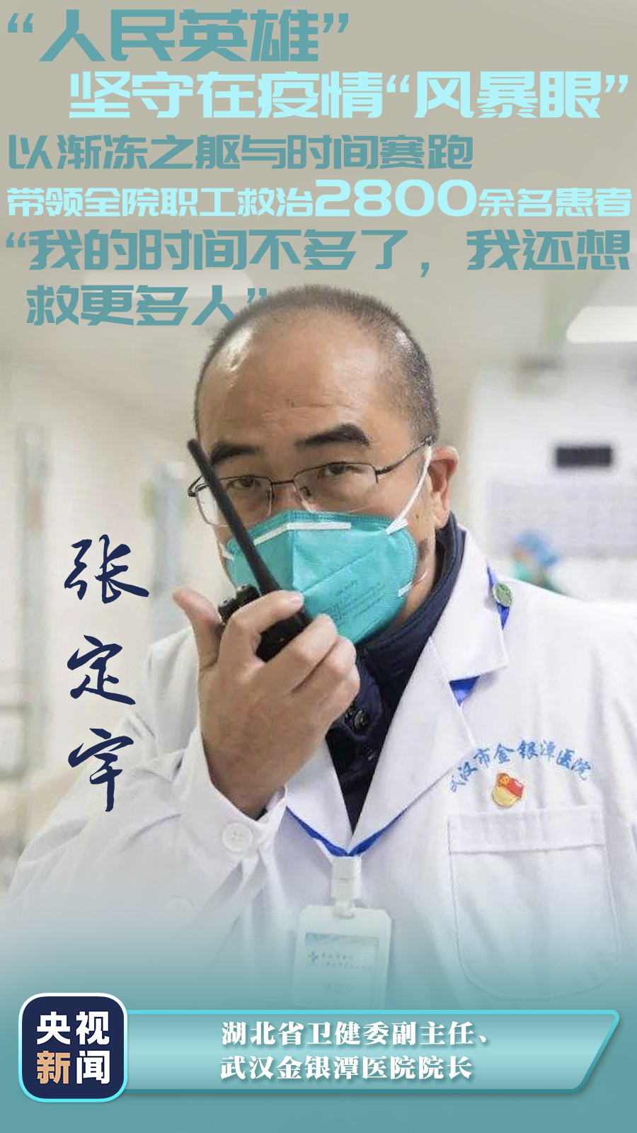 武汉市金银潭医院院长、“人民英雄”张定宇