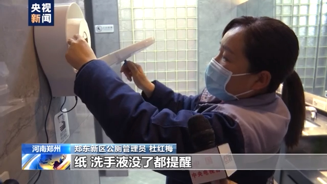 郑东新区公厕管理员 杜红梅:纸、洗手液没了都提醒,我可以马上把它补上。