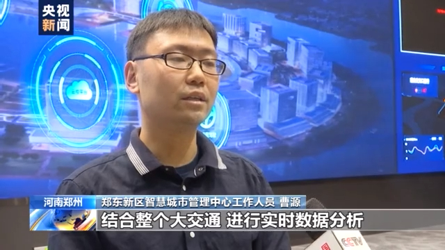 郑东新区智慧城市管理中心工作人员 曹源:我们把这些交通要素都接入了云控平台,结合整个大交通,进行实时数据分析,比如适当延长绿灯时间、缩短红灯、优先保证公共交通。使原来一条线路的通行时间65分钟,通过智慧交通缩短到现在的40分钟。