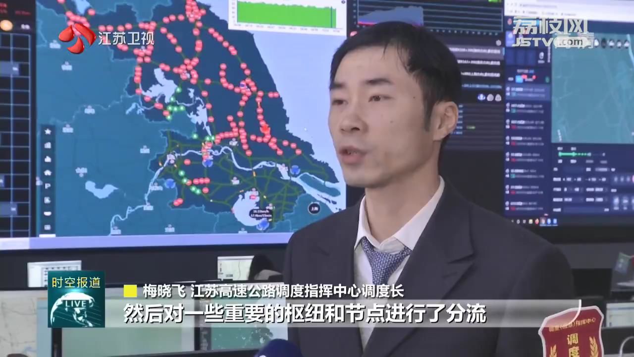 江苏高速公路调度指挥中心调度长梅晓飞说:“大雾期间,我们高速公路采取了一些措施。比方说对收费站进行关闭、发布情报板提示,对一些重要的枢纽和节点进行了分流。”