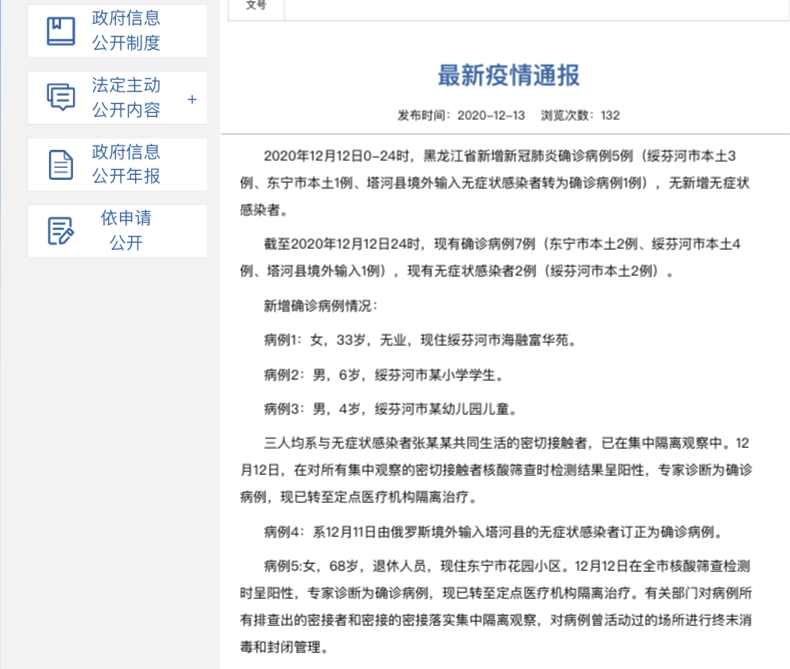 病例4:系12月11日由俄罗斯境外输入塔河县的无症状感染者订正为确诊病例。