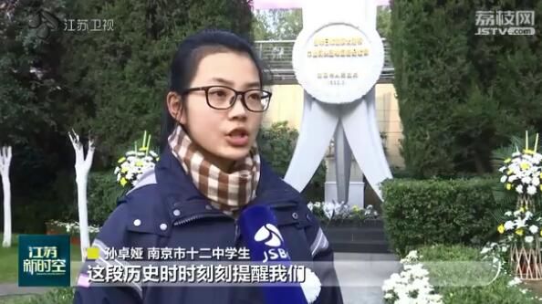 南京市十二中学生孙卓娅说:“这段历史时时刻刻提醒我们要珍爱和平,作为一名高中生,我们应该努力学习、勿忘国耻。”