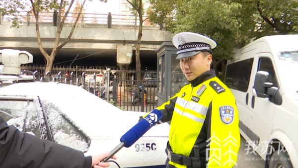 南京交警五大队四中队民警张力勤告诉我们,首先是出行前要对车况进行检查,比方说常见的后视镜的积雪,还有前挡风的积雪都要清理干净,很多路面上的人,容易忽略的是后挡风的积雪,后挡风如果不清理干净,车内的后视镜就观察不到后面的情况。
