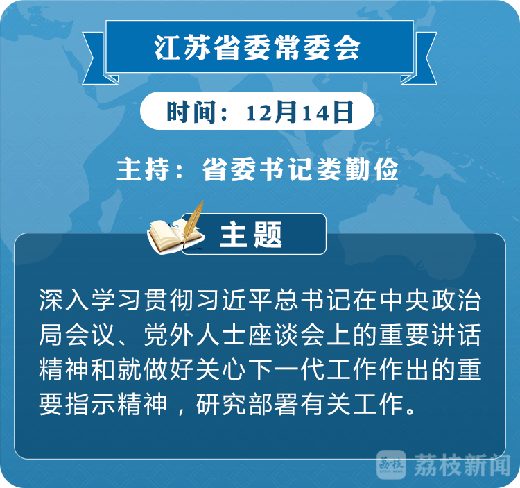 荔枝新闻讯 12月14日,省委常委会召开会议,深入学习贯彻习近平总书记在中央政治局会议、党外人士座谈会上的重要讲话精神和就做好关心下一代工作作出的重要指示精神,研究部署有关工作。