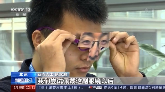 业内人士 唐家渝:比如说我们把这个考勤机放在这里,大家其实已经可以看到,它已经识别到我们这位同事张旭东了,当我们这位同事戴上特制的眼镜,我们可以看到这个考勤机,把他识别成了我们另外一位同事。