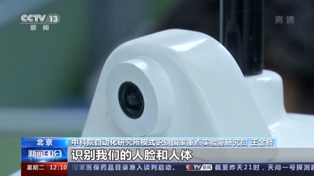 中国科学院自动化研究所模式识别国家重点实验室研究员 王金桥:它的摄像头就是用来识别我们的人脸和人体,一个同学过来做一个简单的展示。
