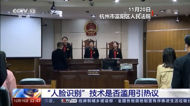 画面中,法庭公开开庭宣判的这起案件,被称为“人脸识别第一案”。去年,因杭州野生动物世界的年卡门票由指纹识别被“强制”升级为“刷脸”识别,浙江理工大学的特聘副教授郭兵将动物世界诉至法院。一审法院经审理认为,杭州野生动物世界收集郭兵照片信息不具备正当性,应予以删除。