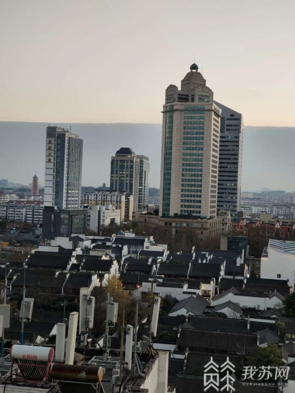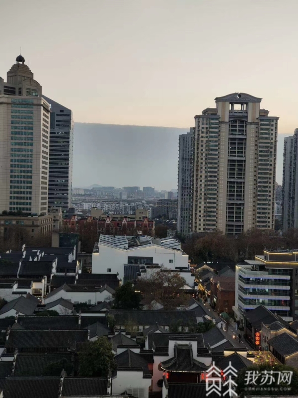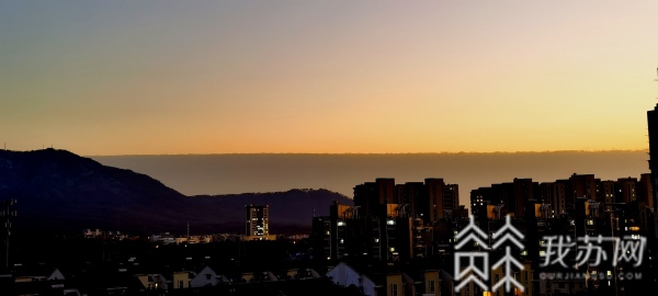 今天(12月15日)傍晚,很多南京市民发现,天空一半是厚厚的黑色云层,如同黑色的城墙屹立在远方,另一半是湛蓝的天空,中间出现了一道明显的分界线,大约30分钟,就都被黑暗隐去。