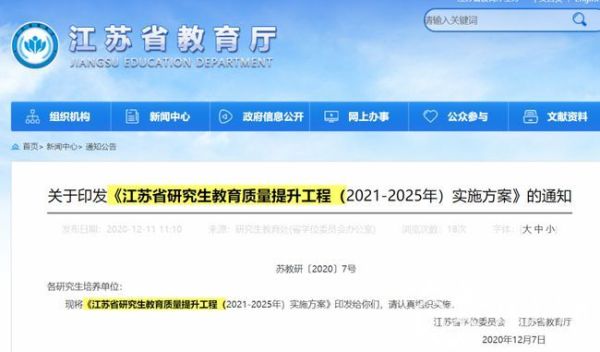 “十四五”时期,全省将持续实施江苏高水平大学建设工程、优势学科建设工程、研究生培养创新工程。到2025年,预计全省在学研究生规模将达到25万人左右,其中博士研究生4万人、硕士研究生21万人,学术学位与专业学位硕士研究生规模比例将达到4:6,形成规模结构更加科学、体制机制更加完善、资源配置更加合理的研究生教育体系,研究生培养质量显著提高,高层次创新人才供给能力显著增强,基本建成国内领先、具有江苏特色的研究生教育强省。