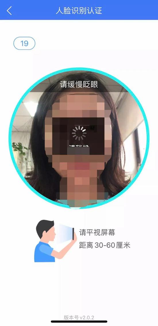 眨眼认证:当你出现在圆框内,请正面对准圆框,眨眨眼、点点头完成认证。