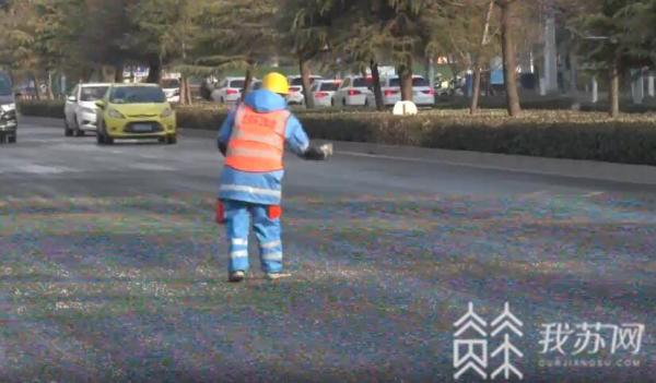 发现路面结冰后,交警部门迅速到达现场维持秩序。环卫部门也组织人力赶到现场,通过向路面撒融雪剂的形式,以最快的速度让路面化冻。