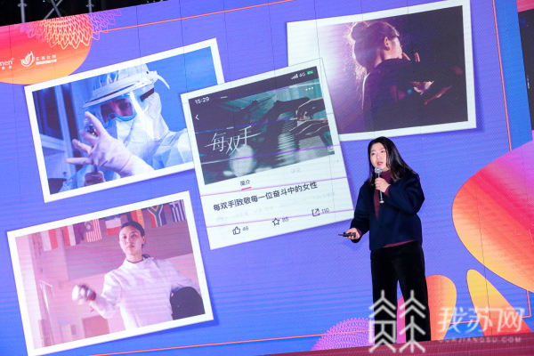决赛现场,入围主创们带来精彩路演。中国妇女报副总编辑金勇、省委网信办网络传播处处长傅晴、新华社江苏分社全媒体报道中心副主任李雨泽、新华报业传媒集团经营管理办公室主任魏长健、江苏省广播电视总台融媒体新闻二部副主任李轩、新华网江苏频道副总编辑黄蓉、南京大学新闻传播学院研究员吴志远组成专家评审团,与大众评审团共同为决赛作品打分。