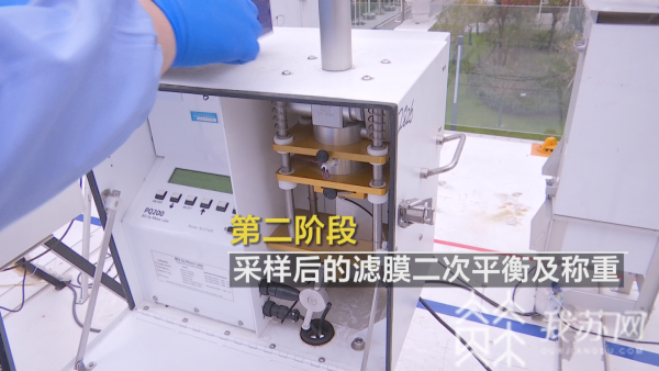 在称重后将滤膜取出,放在PM2.5采样器中,采集23小时后,再放到百万分之一天平中进行称重。两次称重后的质量差,即为PM2.5的质量。实验人员用相应的公式,算出空气中PM2.5的质量浓度。