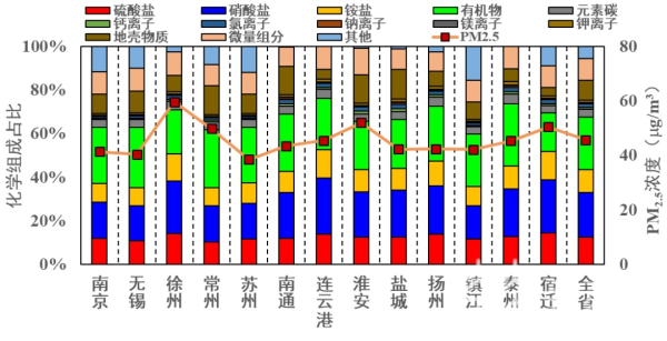 2020年1月--10月江苏13个设区市PM2.5各组分占比