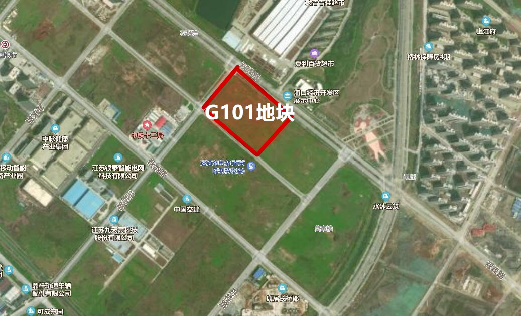 NO.2020G101地块(浦口区桥林街道兰花塘路以南、双峰路以西地块)东至双峰路,南至建兰路,西至沧浪路,北至兰花塘路。规划用地性质为Rb商住混合用地,出让面积:38842.46㎡ ,容积率:1.0< Far≤2.5,建筑高度:H≤80m,起拍总价:8.35亿元,最高限价:10亿元,起拍楼面价:8598.84元/㎡,毛坯房销售限价:20000元/㎡。最终,经过18轮竞拍后,该地块被金地以9.2亿元拿下,成交楼面价为9474元/㎡。