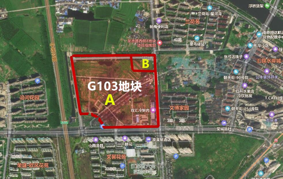 G103地块位于六合新城,六合新城规划总面积为7.58平方公里,将建设一座服务于六合及周边区域,具有现代城市综合服务设施和配置标准,以发展高端商贸服务、文化娱乐、医疗卫生、都市旅游休闲等功能为主的江北新区城市副中心。、