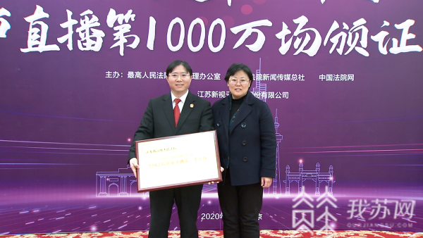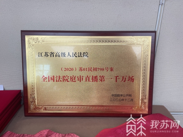 今天(12月17日)上午,最高人民法院审判管理办公室、人民法院新闻传媒总社、中国法院网共同在江苏高院举办“中国庭审公开网庭审直播第1000万场颁证活动”。12月4日,南京环境资源法庭开庭审理王玉林生态破坏民事公益诉讼一案,成为中国庭审公开网第1000万场公开庭审。会上,颁奖嘉宾向江苏高院颁发“中国庭审公开网庭审直播第1000万场”奖牌,向南京中院等3家中级法院,昆山法院等11家基层法院颁发了“优秀直播法院 ”证书。