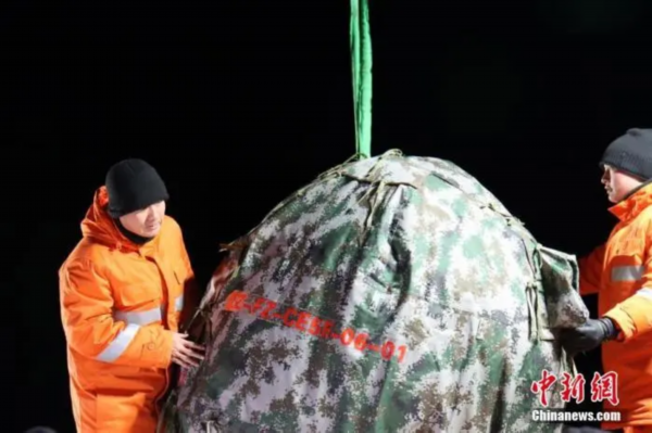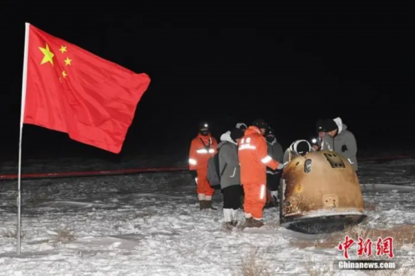 北京时间12月17日1时59分,嫦娥五号返回器在内蒙古四子王旗预定区域成功着陆,标志着中国首次月球采样返回任务圆满完成。