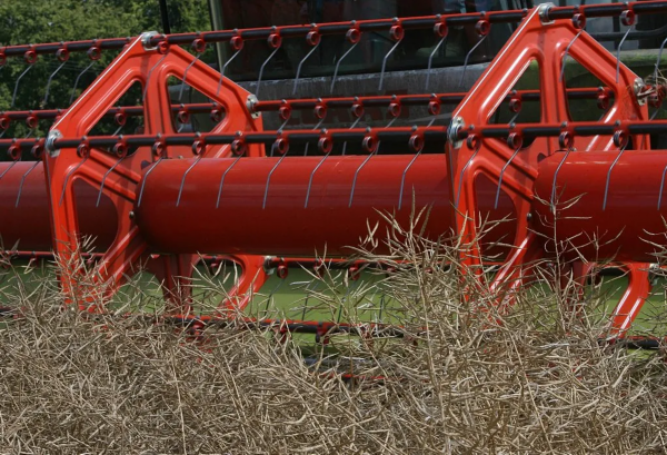 英国一家农场内,农民正在收割油料作物油菜籽。(来源:视觉中国)
