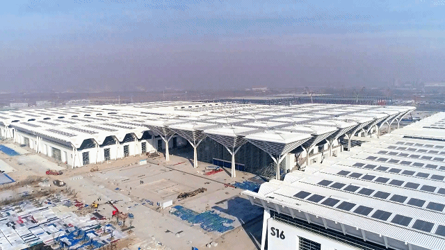 作为服务京津冀协同发展、承接北京非首都功能疏解的标志性工程,国家会展中心(天津)项目,自2019年3月开工建设,目前施工进展顺利,一期所有展馆屋面及外檐全部完成。
