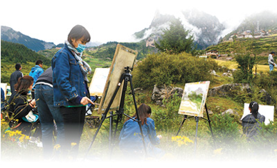 美术爱好者在扎尕那村写生。