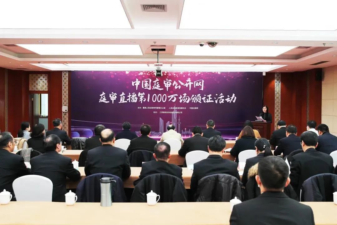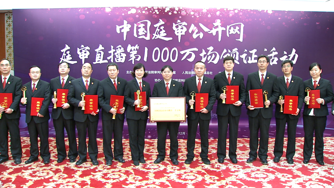 12月17日,在江苏省高级人民法院举行了一场特殊的证书奖牌颁发仪式。来自最高人民法院审判管理办公室等部门的负责同志向江苏高院颁发了“中国庭审公开网庭审直播第1000万场”奖牌。除了这个极具象征意义的荣誉以外,南京中院等3家中级法院、昆山法院等11家基层法院获得了“优秀直播法院 ”证书。