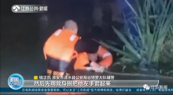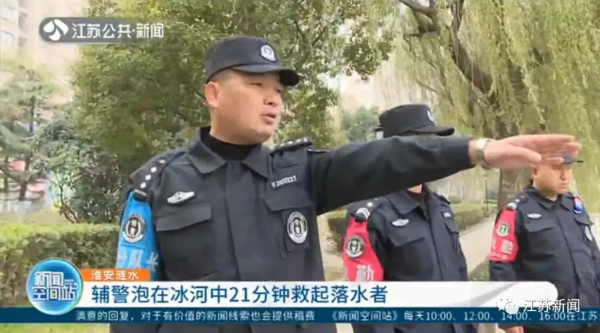 最近,淮安涟水上演暖心一幕:当地巡特警大队辅警钱正凯为了救人,在冰水中整整泡了21分钟,终于和队友将落水者救上岸。
