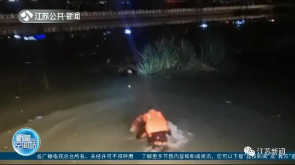 “顺着我们的手电筒照,看见有一个人趴在河里面,半边脸露出来,然后我二话没讲,脱下外套穿着救身衣,拿着救生圈跳下去。”钱正凯回忆。 岸边的河水虽然不深,淤泥却很深,钱正凯一步一步蹒跚着向落水者走去。