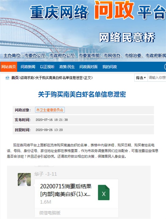 但在这个时候,被告重庆某营销策划有限公司却将一份名为《重庆已购进口白虾顾客名单》的文章发布在其管理的公众号供下载,该名单包括原告赵某在内的重庆各区县一万多名购买进口白虾的人员的姓名、家庭住址、身份证号码、手机号码等详细个人信息。