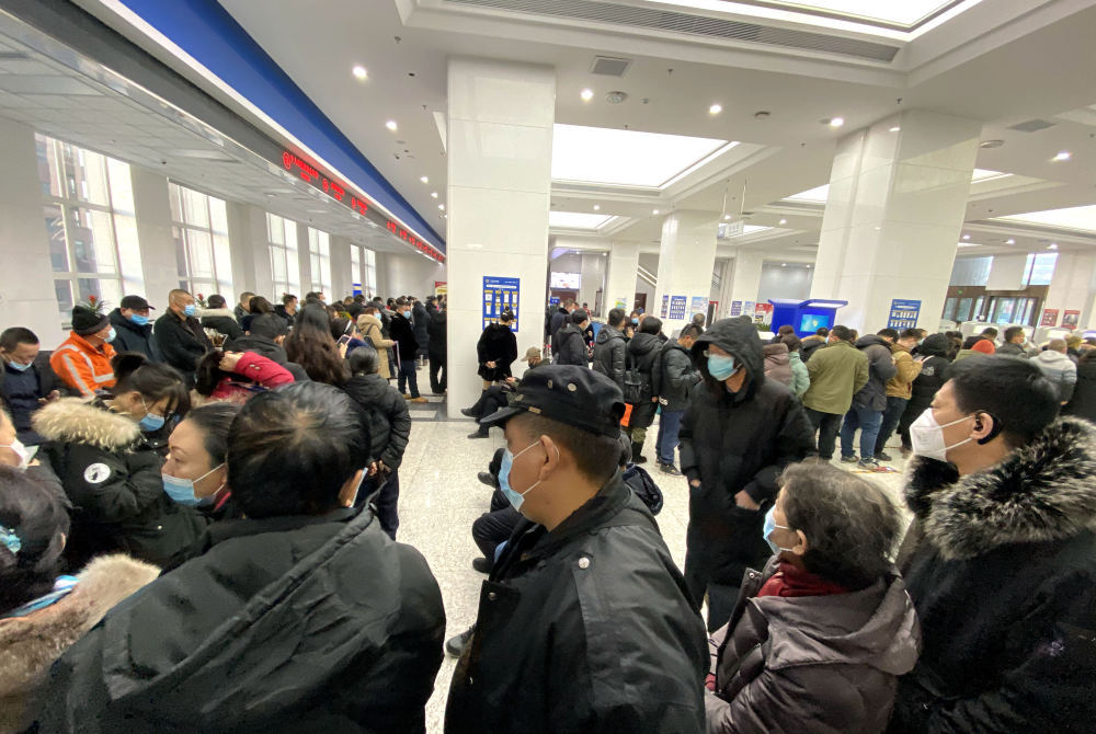 12月18日一早,市民在长春市社保服务中心等待领取业务办理号码。新华社记者 司晓帅 摄