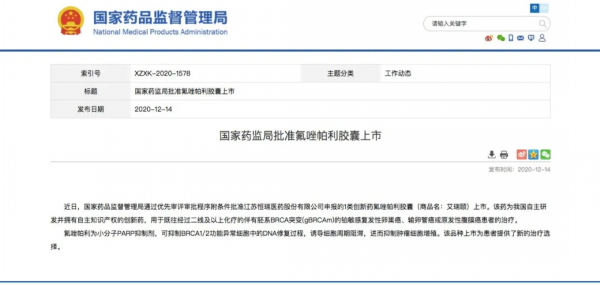▲ 12月14日,恒瑞医药研发的治疗复发性卵巢癌创新药氟唑帕利胶囊获国家药品监督管理局批准上市。