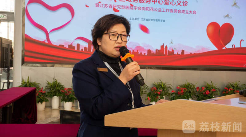 荔枝新闻讯 12月19日,江苏省研究型医院学会向阳花公益工作委员会成立大会在南京市江宁区政务服务中心举行。会上,江苏省研究型医院学会副秘书长李红作为代表,宣读了学会关于同意筹建向阳花公益工作委员会的批复并颁发了证书。
