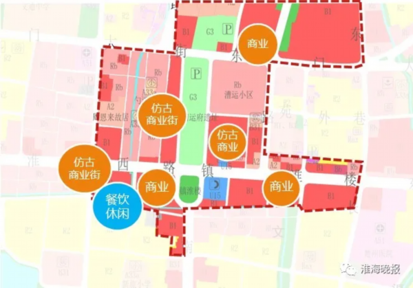规划范围:淮安区商业次中心规划范围东起东长街,西至西长街,以镇淮楼为中心,南北纵深区域。规划范围内总用地面积为0.43平方公里。规划商业建筑总面积控制在7-10万平方米,控制不再新增商业设施。