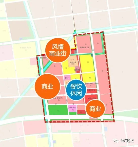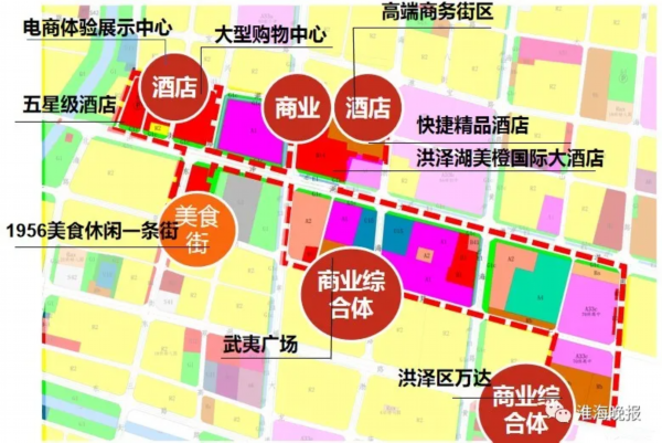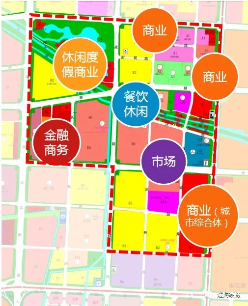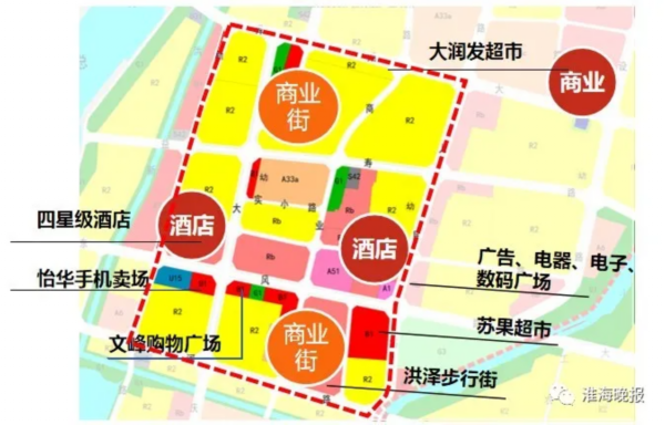 核心功能及发展引导:服务整个淮阴区的商业核心区域,集商业功能、含购物中心、商贸、购物、酒店、特色美食、娱乐等于一体的多功能、现代化的中高档一站式商业中心。