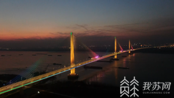 亮眼!南京长江上又一条连接江南江北的交通“玉带”——江心洲长江大桥(长江五桥)夜景照明工程已全面完工!流光溢彩的索塔与桥面交相辉映,如彩色的长龙横卧江面,与城市夜景融为一体,曼妙无比。
