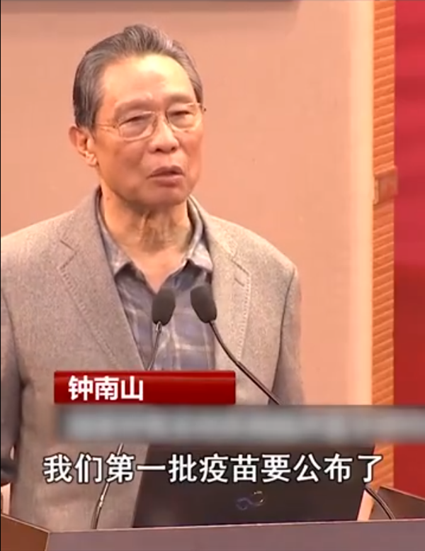 钟南山:我们第一批疫苗要公布了,第一款、第二款很快要推出,很快就在中国要接种。我们除了严防死守以外,还要打疫苗,两条路才能解决问题。