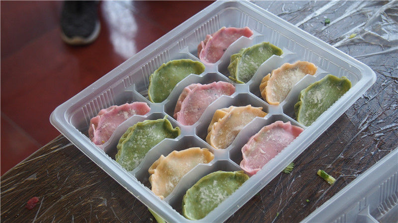 12月10日上午,工作人员用心挑选的新鲜食材已经准备就绪,清早刚打好的肉馅儿带着油脂特有的质感,在灯光下饱满润泽;水灵灵的芹菜绿油油的茎叶,一股子娇俏模样。在工作人员的引导下,村民们有序进场,捋起衣袖,大展拳脚!大家伙儿纷纷拿起芹菜、剪刀、塑料盆,干脆利落的开始择菜、洗菜,这些食材在村民们的超高“战斗力”面前不值一提,不到十分钟,全部都被理净,整齐地码好。