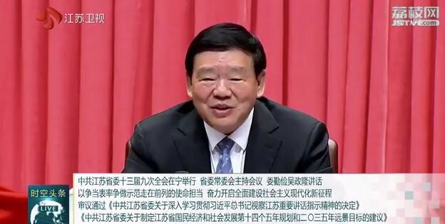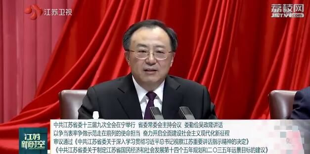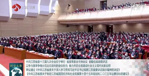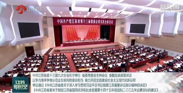 中国共产党江苏省第十三届委员会第九次全体会议12月22日至23日在南京举行。全会以习近平新时代中国特色社会主义思想为指导,认真贯彻党的十九大和十九届二中、三中、四中、五中全会精神以及中央经济工作会议精神,深入落实习近平总书记视察江苏重要讲话指示精神,总结今年工作,研究部署“十四五”和明年工作,动员全省上下继往开来、开拓进取,着力深化“强富美高”新江苏建设,以“争当表率、争做示范、走在前列”的使命担当,奋力开启全面建设社会主义现代化新征程。