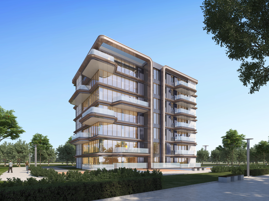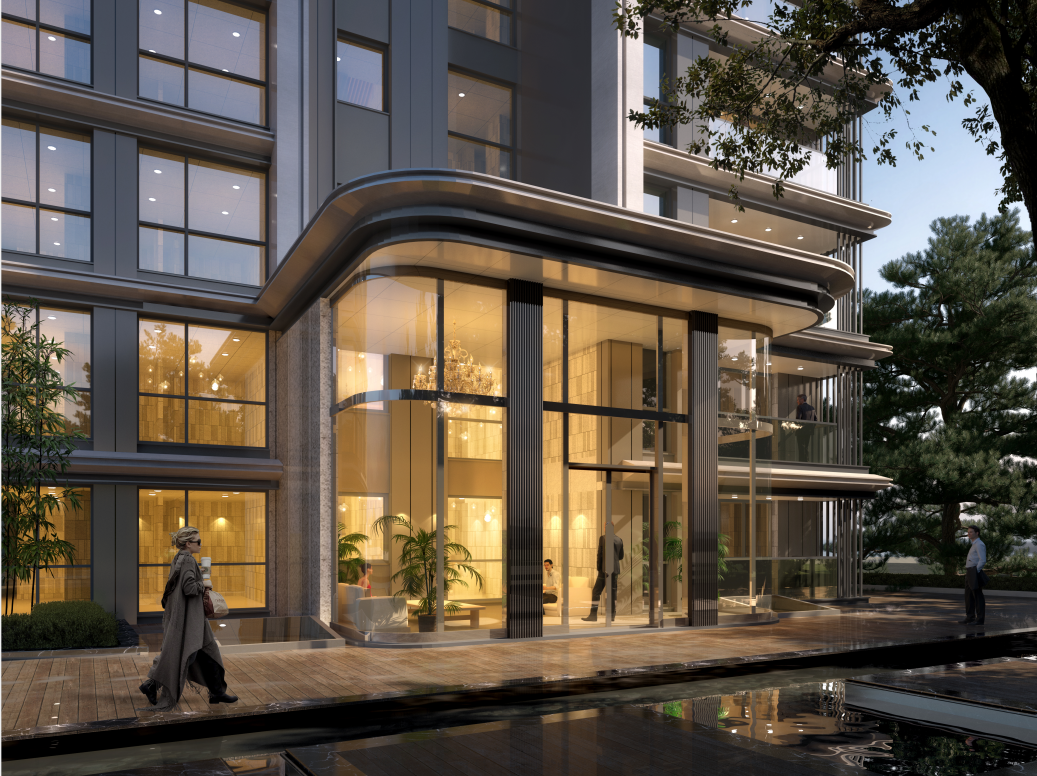 称之为艺术的建筑,需要对品质执着追求,对材料特质理解,江天瓴筑外立面采用灵动曲线设计,浅色调石材—世纪雅钻与蓝灰色LOW-E落地玻璃相结合,香槟色金属、细腻自然石材呼应融合,铸造深远、清贵的建筑语境。