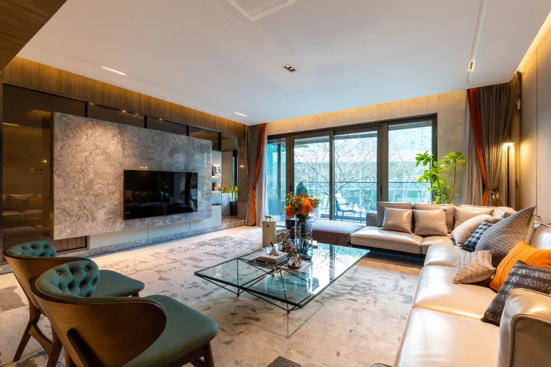 人物的格局在于宽境,恢弘朗阔餐客厅空间;以大开大合的设计手法划分空间,以精致灵动的线条勾勒细节。电视墙悬挂设计,轻量化艺术传达,给予空间延伸感的同时将客厅与餐厅巧妙分割,空间节奏主次分明。大面积开窗,与自然对话,行云流水般地提升空间中的气质。