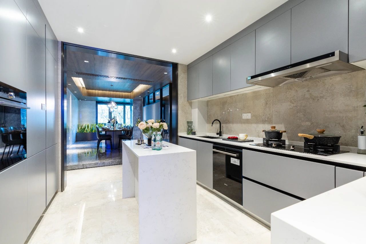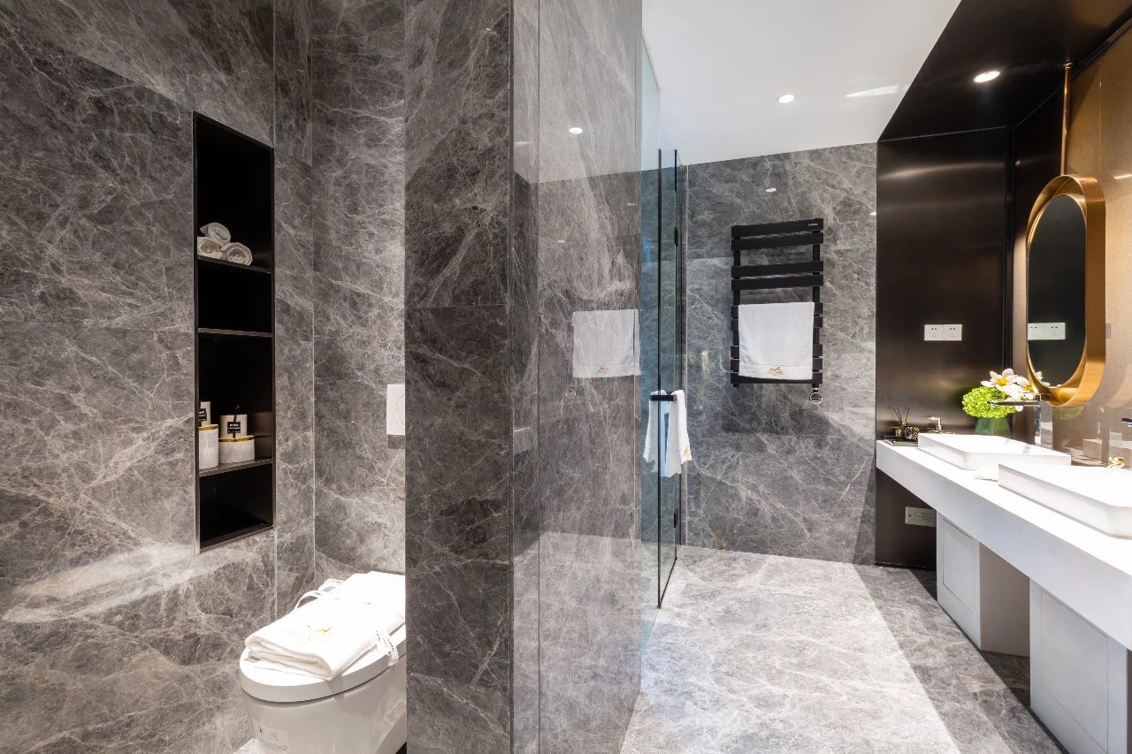 好的居所设计,要合乎物性,对境界的缔造,则应忘记机心,自然而然。江天瓴筑室内空间大多选用灰色系天然大理石材、原木材质,以达到追求自然本真的效果,而玫瑰金、黑钛金属以及皮革、布艺软装的搭配,探索极简静美,把现代简约奢华演绎到了极致。一墙一瓦,一窗一户,取材于景,层层不同,于方圆之中,藏有乾坤。