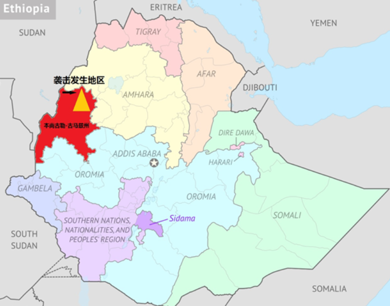 此前,9月至10月间,该地区已发生多起针对平民的袭击事件,导致至少200人死亡,上千人流离失所;11月中旬,该地区又发生枪手袭击大巴车事件,导致至少34人死亡。 该地区官员表示,正在核实袭击者和受害者的身份,但未提供更多信息。据当地媒体报道,本尚古勒-古马兹州政府已逮捕了5名该地区与安全事务相关的官员。 袭击发生前一天,即12月22日,埃塞俄比亚总理阿比·艾哈迈德曾赴梅特克尔与当地社区进行讨论,并称联邦政府正在与地方安全部队合作,以寻求持久的方法来解决该地区的安全危机。 梅特克尔地区位于本尚古勒-古马兹州东北部,与阿姆哈拉州相邻,一直以来该州一些民族之间因土地、资源分配等存在矛盾。