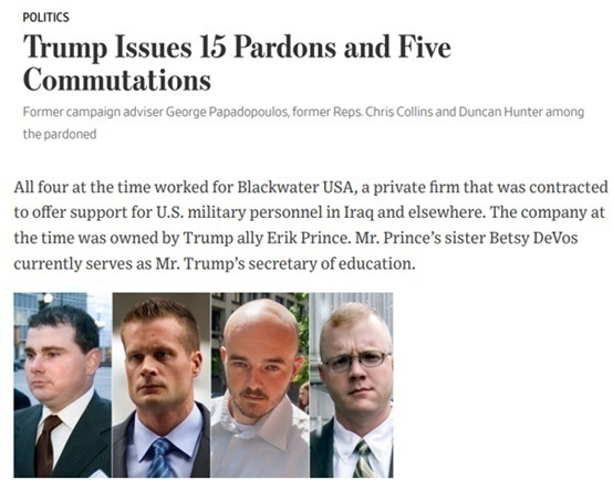 从《华尔街日报》的报道来看,这4名被特朗普此次特赦的刽子手都来自一家与美国军方有外包业务往来的私营安保公司,名为“黑水”(BlackWater)。
