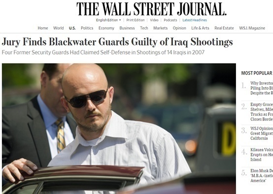 至于4人此前在伊拉克犯下的罪行,可谓是人神共愤。根据《华尔街日报》以及同样报道了此事的美国CNN的说法,在2007年的时候,“黑水”公司的这四名员工被控在伊拉克首都巴格达引发了一起极为血腥的枪击事件,导致10多名伊拉克平民被杀害。